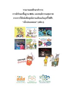 - ชื่อหนังสือผลศึกษาสำรวจ การมีทักษะพื้นฐาน MIDL และพฤติกรรมสุขภาพ จากการใช้หนังสือชุดนิทานเตือนภัยบุหรี่ไฟฟ้า “เด็กปลอดพอด” (เฟส 2)