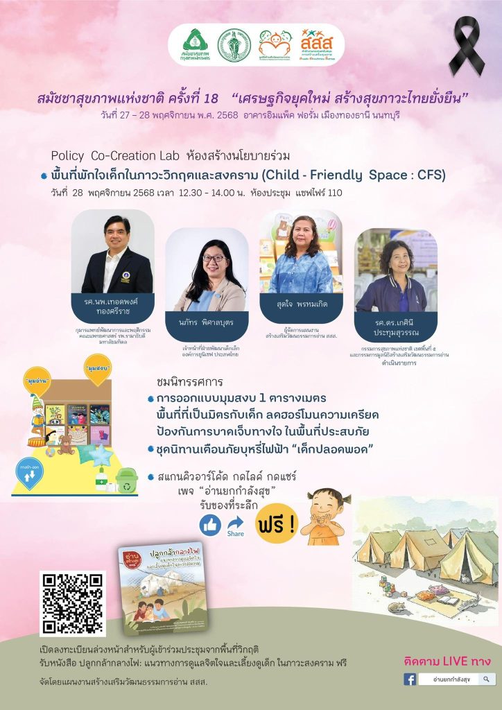 เวทีประชุม “พื้นที่พักใจเด็กในภาวะวิกฤตและสงคราม” ในงานสมัชชาสุขภาพแห่งชาติ ครั้งที่ 18