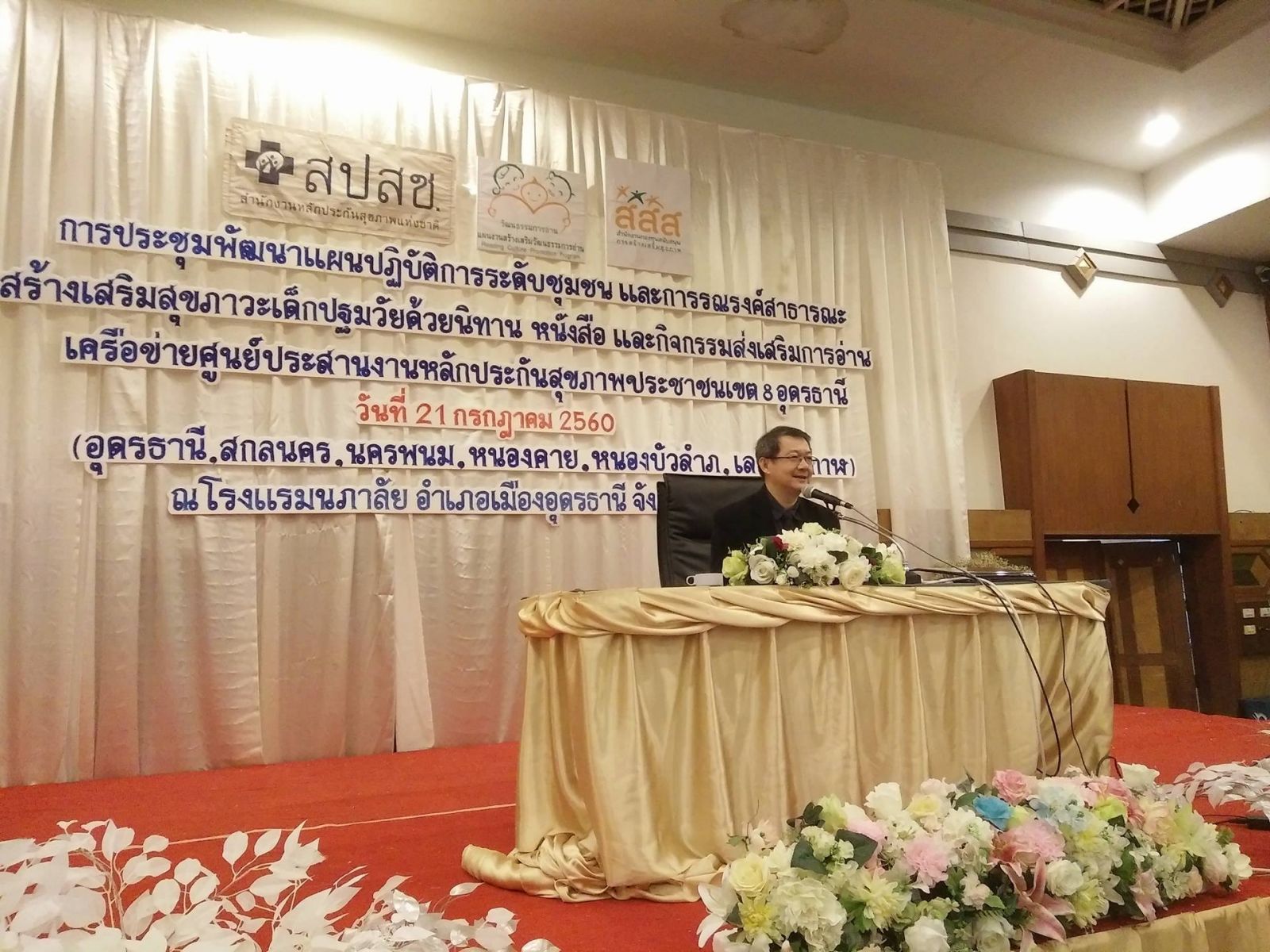 อุดรธานี : 21 กรกฎาคม 2560   กลไกประสานงานหลักประกันสุขภาพ เขต 8 อุดรธานี  ร่วมกับแผนงานสร้างเสริมวัฒนธรรมการอ่าน สสส. จัดประชุมพัฒนาแผนปฏิบัติการระดับชุมชน และการรณรงค์สาธารณะสร้างเสริมสุขภาวะเด็กปฐมวัยด้วยนิทาน หนังสือ และกิจกรรมส่งเสริมการอ่าน ในวันศุกร์ที่ 21 กรกฎาคม 2560  ณ ห้องประชุมฝนหลวง โรงแรมนภาลัย   จ.อุดรธานี  ทั้งนี้ได้รับเกียรติเปิดการประชุมและบรรยายสรุปภาพรวมสถานการณ์สุขภาพเด็กปฐมวัย พื้นที่ สป.สช.เขต 8 โดย ทันตแพทย์กวี  วีระเศรษฐกุล  ผู้อำนวยการสำนักงานหลักประกันสุขภาพเขต 8