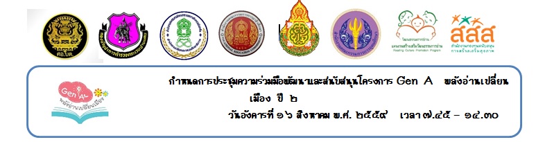 กำหนดการประชุมความร่วมมือพัฒนาและสนับสนุนโครงการ Gen Aพลังอ่านเปลี่ยนเมือง ปี ๒