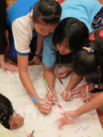 บรรยากาศทั้งวันจึงเป็นบรรยากาศที่หนังสือและการอ่านเป็นพระเอกของงาน ก่อนเข้าสู่ช่วงการออกแบบกิจกรรม ที่เด็กๆ ต้องช่วยกันคิดถึงสิ่งที่วัยรุ่นอย่างพวกเขาชอบทำ แล้วโยงให้เข้ากับกิจกรรมการอ่าน เด็กๆ จึงร่วมแสดงความคิดเห็นกันอย่างหลากหลาย เด็กๆ จริงจังกับการทำงานมาก พยายามทำงานให้ออกมาดี และน่าสนใจที่สุด งานที่ออกมาจึงเชื่อมโยงกับการอ่านอย่างแท้จริง เหมาะกับวัยของผู้เข้าร่วม มีความสนุกสนาน และสามารถนำกลับไปประยุกต์ใช้ที่โรงเรียนได้จริง