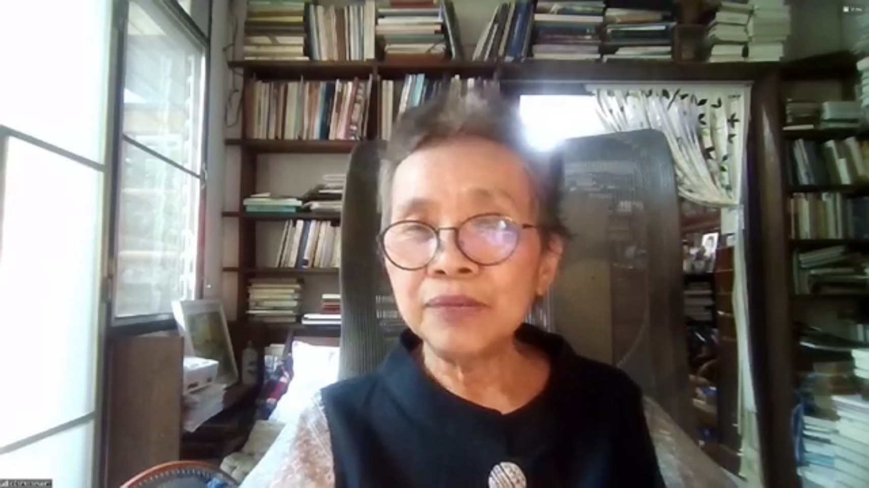 ด้านนางชมัยภร บางคมบาง (แสงกระจ่าง) ศิลปินแห่งชาติสาขาวรรณศิลป์ ประจำปี 2557 กล่าวว่า เมื่อใจมีปัญหาต้องหาวิธีเยียวยาใจ บางคนยังไม่รู้ตัวว่าหัวใจต้องการอะไรต้องแก้ไขอย่างไร ดังนั้น ผู้ป่วยใจต้องสังเกตอาการของตัวเอง และหาวิธีรักษาด้วยการพลิกมุมมองจากข้างใน เฉกเช่นกระบวนการของการอ่านและการเขียนที่เปรียบเป็นวัคซีนใจ ส่วนหนังสือเปรียบเป็นเม็ดยา เมื่อหยิบมาอ่านก็เหมือนกับการกินยารักษา เมื่อรักษาหายแล้วยังสามารถส่งต่อวิธีรักษานี้กับผู้อื่นได้