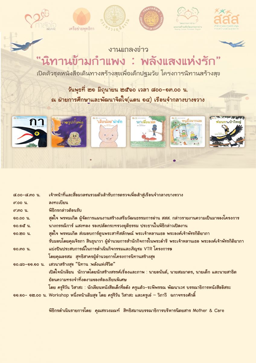 งานแถลงข่าว “นิทานข้ามกำแพง : พลังแสงแห่งรัก” เปิดตัวชุดหนังสือเดินทางสร้างสุขเพื่อเด็กปฐมวัย โครงการนิทานสร้างสุข