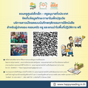 แผนงานยุทธศาสตร์สร้างเสริมวัฒนธรรมการอ่าน สสส. ชวนครูศูนย์เด็กเล็ก-ครูอนุบาลทั่วประเทศ จัดเก็บข้อมูลทักษะภาษาในเด็กปฐมวัย บริการดาวน์โหลดแบบบันทึกฯ ฟรี
