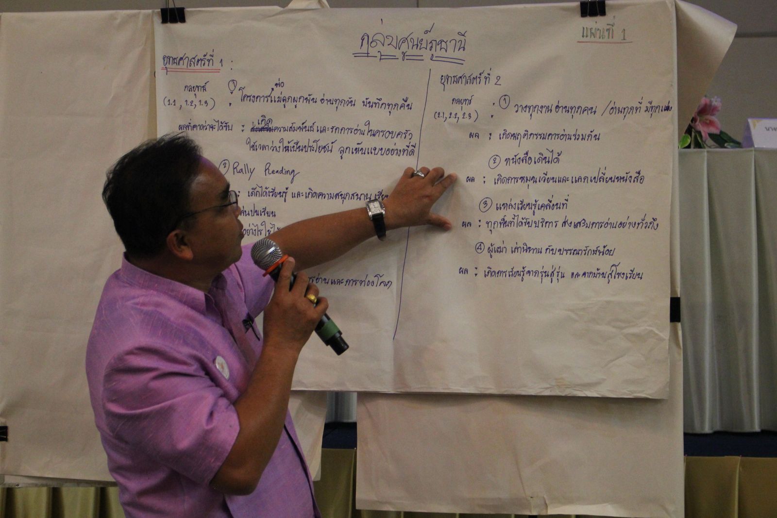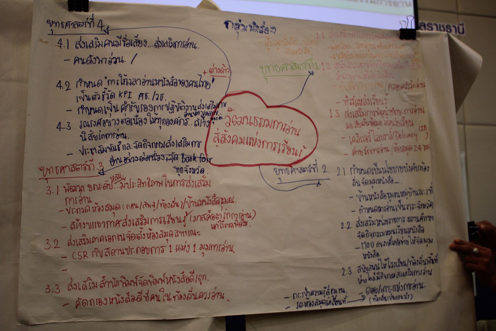 ผู้เข้าร่วมอบรมร่วมวางแผนการสร้างเสริมวัฒนธรรมการอ่านอย่างสอดคล้องกับยุทธศาสตร์หลักของแผนแม่บทส่งเสริมวัฒนธรรมการอ่านสู่สังคมแห่งการเรียนรู้ของไทย พ.ศ. 2560-2564