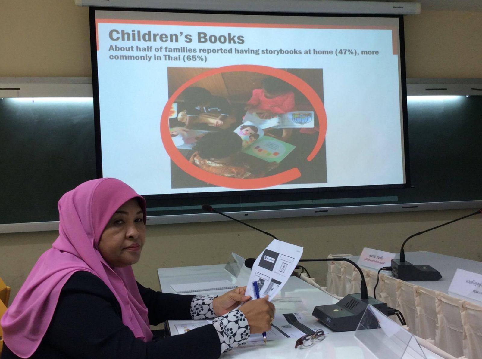 นางสุดใจ พรหมเกิด ผู้จัดการแผนงานสร้างเสริมวัฒนธรรมการอ่าน ได้เข้าร่วมประชุมหารือ รับฟังการนำเสนอความก้าวหน้า และเเผนการดำเนินงาน โดยที่ประชุมเสนอแนวทางพิจารณาการคัดเลือกหนังสือ สื่อและอุปกรณ์ส่งเสริมการอ่าน โดยเฉพาะหนังสือที่สอดคล้องกับบริบท วิถีชีวิต และภาษาแม่ การเพิ่มบทบาทของพ่อให้เข้ามาเป็นกำลังหลักสำคัญในการส่งเสริมการอ่านมากกว่าหรือเคียงคู่กับแม่ การประชุมครั้งนี้มีผู้ร่วมประชุมเป็นนักวิชาการและผู้ทรงคุณวุฒิ กว่า 30 คนจากหน่วยงานราชการและภาคประชาสังคมต่างๆ อาทิ ศอ.บต. ศูนย์อนามัยที่ 12 สำนักงานศึกษาธิการภาค ศูนย์ประสานงานตาดีกาชายเดนใต้ เป็นต้น เพื่อร่วมกันขับเคลื่อนการพัฒนาเด็กปฐมวัยด้วยหนังสือเเละการอ่านจังหวัดชายเเดนภาคใต้อย่างต่อเนื่อง