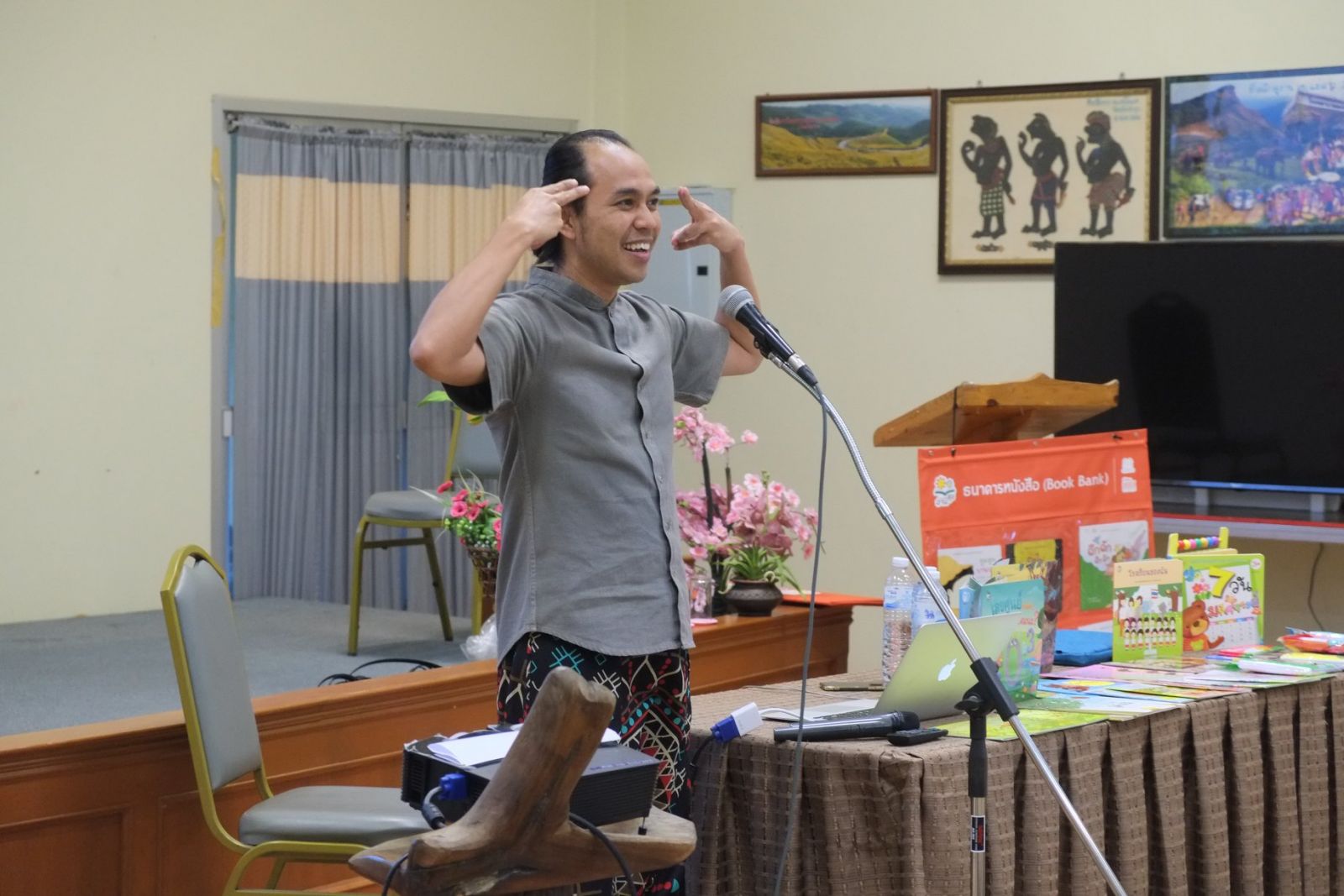 กิจกรรมอบรมในวันนี้ประกอบด้วย การบรรยายวิชาการเรื่อง“หน้าต่างแห่งโอกาส : การพัฒนาเด็กปฐมวัยด้วยหนังสือและการอ่าน”โดย คุณสุดใจ พรหมเกิด ผู้จัดการแผนงานสร้างเสริมวัฒนธรรมการอ่านและการอบรมปฏิบัติการ“เทคนิคการใช้หนังสือภาพ หนังสือนิทานเทคนิคการเล่านิทาน และกิจกรรมต่อเนื่องจากการอ่านหนังสือและเล่านิทาน”ฯลฯโดย อ.ชัยฤทธิ์ ศรีโรจน์ฤทธิ์ บรรณาธิการสำนักพิมพ์ Hello Kids