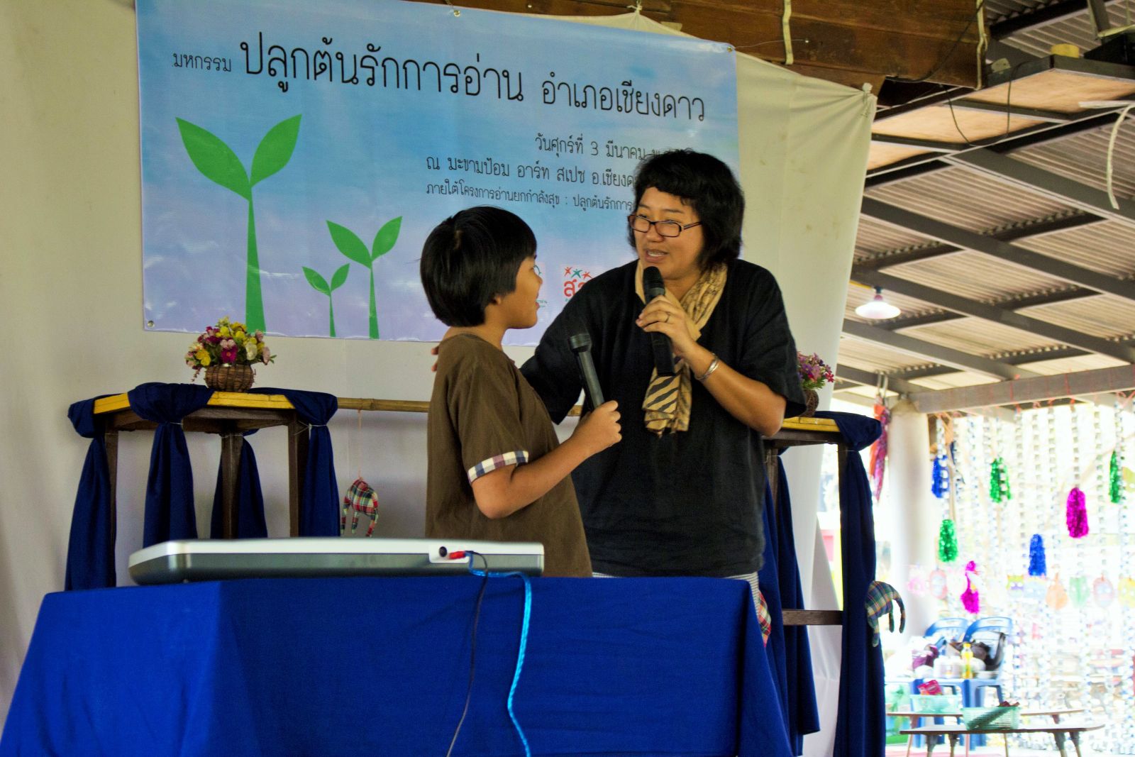 งานในครั้งนี้เรียกเสียงหัวเราะ ความตื่นเต้นจากเด็กๆ กว่า 300 คน ตั้งแต่ช่วงพิธีเปิด ด้วยการแสดงละครกายกรรมประกอบนิทานจาก คณะละครกายกรรมชาติพันธุ์ดาราอั้ง หมู่บ้านปางแดงนอก และการเล่านิทานมหัศจรรย์ประกอบดนตรี เรื่อง ชาวนากับนกกระจิบ ของ แม่จิ๋ว วีรวรรณ กังวานนวกุล และน้องภู และต่อด้วยความเพลิดเพลินในซุ้มกิจกรรมของแต่ละโรงเรียนที่นำมาให้เด็ก ๆ ได้เล่นจริง ทำจริงอย่างหลากหลาย เช่น กิจกรรมนิทานกาลงดอย เรียนรู้กลางป่า จาก โรงเรียนอนุบาลชนเผ่าผาลาย นิทานหรรษา จากโรงเรียนบ้านปางแดง กิจกรรมยอดนักอ่าน โรงเรียนบ้านทุ่งหลุก กิจกรรมสวนหนังสือ จากศพด.เทศบาลตำบลเชียงดาว และกิจกรรมหนังสือทำมือเพื่อน้องน้อย โดย ศูนย์การศึกษานอกระบบและการศึกษาตามอัธยาศัย