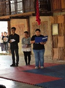 น้องพิงค์ เดือนหลู่ ลุงนุ วัย 17 ปี เล่าว่า “ ที่โรงเรียนมีน้องเล็ก ๆ แบบนี้ แล้วมีกิจกรรมส่งเสริมการอ่านด้วย แต่หนูไม่เคยไปร่วมเลย นี่เป็นครั้งแรกที่ได้มาเป็นพี่เลี้ยง รู้สึกดีใจและสนุก คือไม่คิดมาก่อนว่าหนังสือจะกระตุ้นให้เขากล้าแสดงออกได้มาก แล้วอย่างเกมเป่าแป้ง หนูเห็นว่าเขาชอบมาก แล้วเขาก็พยายามจะอ่านให้ออก เลยคิดว่า อาสาสมัครแบบหนูสำคัญนะ เพราะน้องยังอ่านไม่ออก เราเลยต้องมาชวนน้องอ่านด้วยกิจกรรมหลาย ๆ แบบ แบบนี้ค่ะ ”