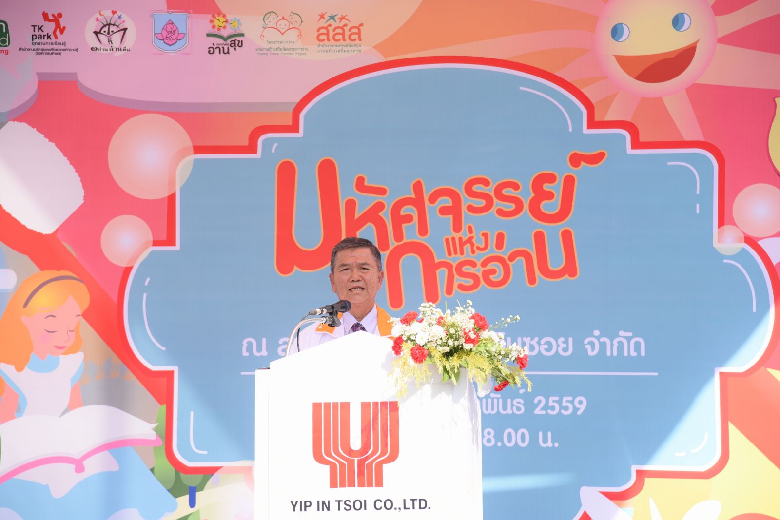นายจุมพล รอดคำดี กล่าวเปิดงานว่า การมีสุขภาวะที่ดี นอกจากการมีร่างกายที่แข็งแรงสมบูรณ์แล้ว ยังรวมถึงการมีสุขภาพจิตใจและสติปัญญาที่ดี ซึ่งการอ่านหนังสืออย่างมีความสุขจะช่วยทำให้เกิดสุขภาวะองค์รวมได้อย่าง สมบูรณ์ สำนักงานกองทุนสนับสนุนการสร้างเสริมสุขภาพ เห็นความสำคัญจึงสนับสนุนและรณรงค์เรื่องการอ่านอย่างต่อเนื่อง โดยการอ่านหนังสือสามารถเริ่ม บ่มเพาะ ปลูกฝังให้เป็นพฤติกรรมได้ตั้งแต่ยังเด็ก จึงรู้สึกชื่นชม พ่อ แม่ ผู้ปกครองที่พาเด็กๆมาเข้าร่วมงานในวันนี้