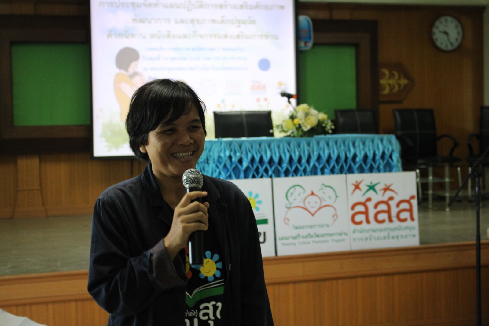 “สปสช. มีโครงสร้างการทำงานแบบมีส่วนร่วมตั้งแต่ระดับตำบลจนถึงระดับชาติ ระดับตำบลคือกองทุนหลักประกันสุขภาพระดับพื้นที่ และระดับเขตมีอนุกรรมการหลักประกันสุขภาพ รวมถึงคณะอนุกรรมการควบคุมคุณภาพบริการสาธารณสุข เช่นเดียวกับระดับชาติ ซึ่งประชาชนสามารถเข้ามามีส่วนร่วมเป็นคณะกรรมการบริหารจัดการและออกแบบนโยบายแผนงานที่เกี่ยวข้องกับสถานการณ์สุขภาพของพื้นที่ได้ โดย สปสช. มีเจตนารมณ์ที่ให้ประชาชนร่วมจัดการสุขภาพ จึงจัดให้มีกองทุนหลักประกันสุขภาพระดับพื้นที่ ซึ่งปัจจุบันมีครบทุกตำบลแล้ว มีระเบียบการใช้จ่ายที่ให้ประชาชนมีส่วนร่วมและหลักการสนับสนุนให้ประชาชน 5 กลุ่มเป้าหมาย ได้เข้าถึงบริการสาธารณสุข ซึ่ง 1ใน 5 กลุ่มเป้าหมายนี้มีเรื่องของ “เด็กปฐมวัย”รวมอยู่ด้วย ดังนั้นกองทุนนี้คือความยั่งยืนที่ประชาชนในตำบลจะได้ใช้ประโยชน์และดำเนินงานเรื่องการส่งเสริมการอ่านเพื่อส่งเสริมพัฒนาการเด็กปฐมวัย หากคนในชุมชนมีแนวคิดให้ความสำคัญเรื่องการอ่านเพื่อการส่งเสริมพัฒนาการเด็กปฐมวัยแล้ว พื้นที่นั้นก็สามารถดำเนินงานได้อย่างต่อเนื่อง ซึ่งการได้ดำเนินงานร่วมกับ สปสช. ทำให้มองเห็นโอกาสดีในการเสริมสร้างสุขภาพเด็กปฐมวัย ซึ่งเป็นฐานรากที่สำคัญในการพัฒนาคุณภาพชีวิตของมนุษย์”