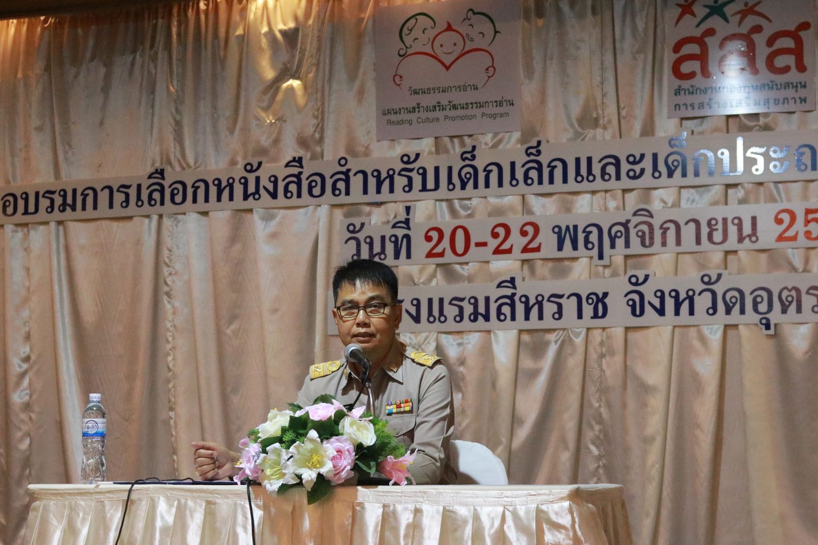 อุตรดิตถ์   :  20 พฤศจิกายน 2560    โรงพยาบาลลับแล  ร่วมกับ สำนักงานท้องถิ่นจังหวัดอุตรดิตถ์ สำนักงานสาธารณสุขจังหวัดอุตรดิตถ์  และแผนงานสร้างเสริมวัฒนธรรมการอ่าน   จัดอบรมปฏิบัติการสร้างเสริมพัฒนาการเด็กปฐมวัยด้วยนิทาน  หนังสือภาพ และกิจกรรมส่งเสริมการอ่าน   และ การ์ตูนสร้างสรรค์สื่ออ่านเพื่อการพัฒนาเด็ก   ณ  ห้องสีหราชบอลรูม โรงแรมสีหราช อ.เมือง จ.อุตรดิตถ์  ภายในงานได้รับเกียรติจาก นายอมรศักดิ์ ปิ่นทอง ศึกษาธิการจังหวัดอุตรดิตถ์  เป็นประธานเปิดการอบรมและพบปะผู้เข้าร่วม ท่านกล่าวว่า “ปฐมวัยนับเป็นช่วงวัยทอง   วัยที่ต้องได้รับการพัฒนาอย่างถูกต้อง   ถ้าหากเราเตรียมความพร้อมให้กับเด็กช่วงวัยนี้ นับเป็นการเตรียมรากฐานของเด็ก ที่จะเข้าสู่ระบบการศึกษาและเติบโตเป็นผู้ใหญ่ที่ก้าวเข้าสู่โลกของการเปลี่ยนแปลงอย่างรวดเร็วในปัจจุบันได้อย่างมีคุณภาพ”  จากนั้นเป็นการบรรยาย “หน้าต่างแห่งโอกาสในการพัฒนาเด็กปฐมวัยและวัยเรียนด้วยหนังสือ” โดยคุณสุดใจ  พรหมเกิด ผู้จัดการแผนงานสร้างเสริมวัฒนธรรมการอ่าน ต่อด้วย การเสริมศักยภาพผู้เข้าด้าน เทคนิคการใช้หนังสือภาพ หนังสือนิทาน และกิจกรรมส่งเสริมการอ่าน โดย คุณชัยฤทธิ์ ศรีโรจน์ฤทธิ์   บรรณธิการสำนักพิมพ์ Hello Kids