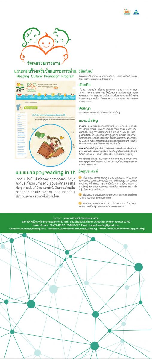 ติดตามข้อมูลเพิ่มเติม ผ่านการสแกนด์ QR code หรือ www.happyreading.in.th