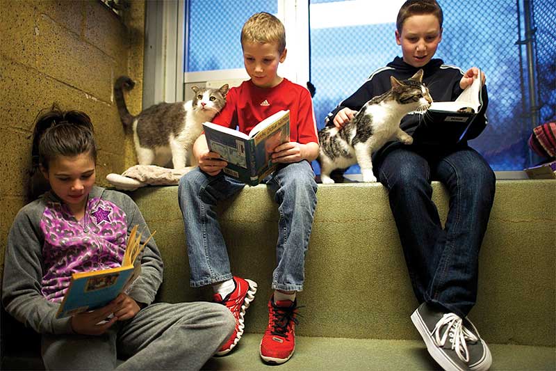 นั่นน่ะสิ? น่าจะมีใครหลายคนที่คิดว่าน่าจะ "เสียเวลาเปล่า" ในเมื่ออ่านไปแมวก็ไม่มีวันฟังรู้เรื่อง แต่ปรากฏว่า นี่เป็นวิธีหนึ่งที่ศูนย์ช่วยเหลือสัตว์ถูกทิ้งในเขตเบิร์ก รัฐเพนซิลเวเนีย สหรัฐอเมริกา คิดว่า จะเป็นประโยชน์ต่อเด็กๆ มาก ในการช่วยปลูกฝังนิสัยรักการอ่าน ฝึกทักษะการอ่าน และปลูกฝังความรัก ความเมตตาต่อสัตว์ในจิตใจของเด็กๆ ขณะเดียวกัน บรรดาแมวไร้บ้านที่ถูกทอดทิ้งก็มีโอกาสจะได้รับสัมผัสที่บริสุทธิ์อบอุ่น