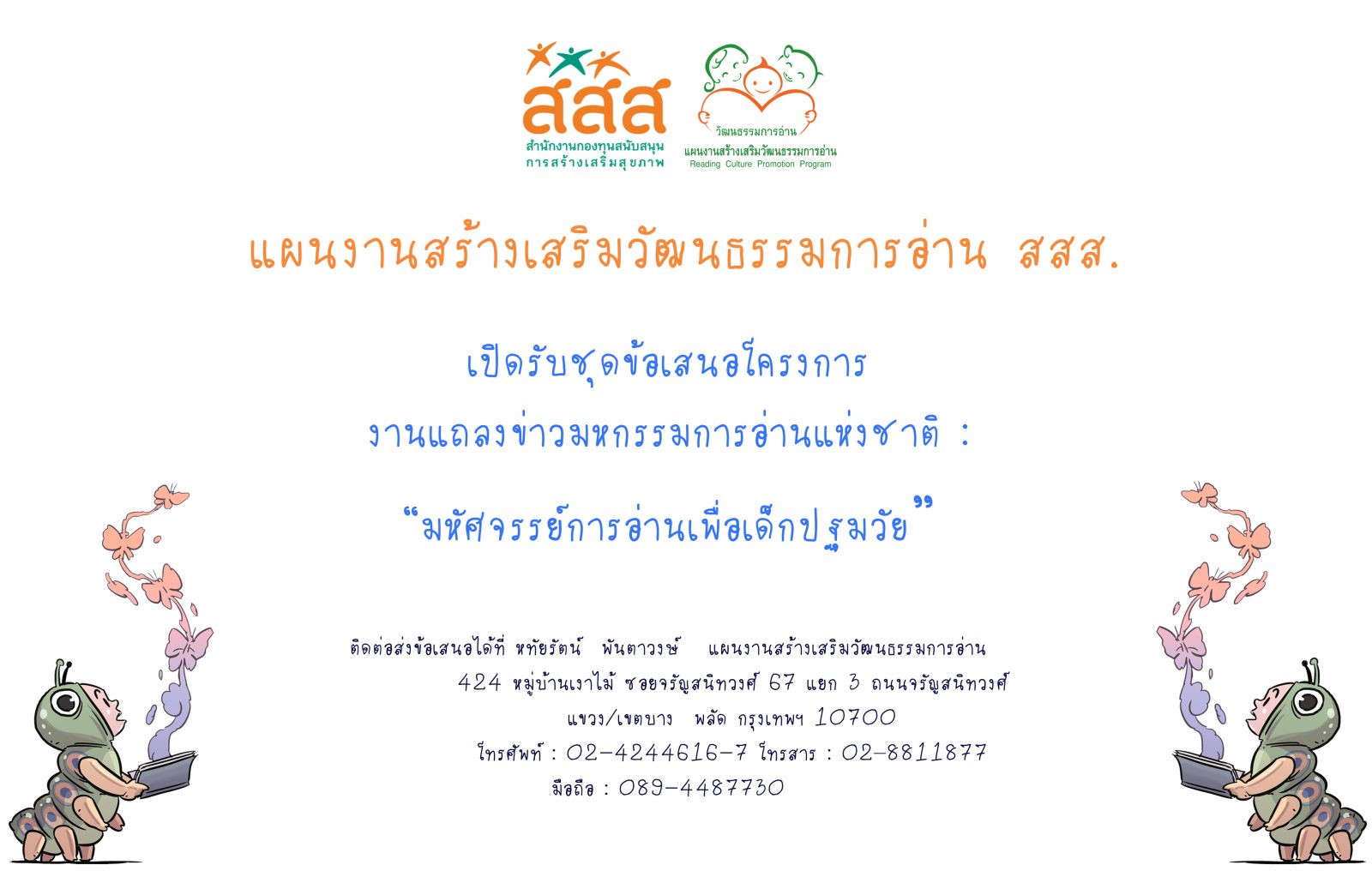 เปิดรับชุดข้อเสนองานแถลงข่าวมหกรรมการอ่านแห่งชาติ