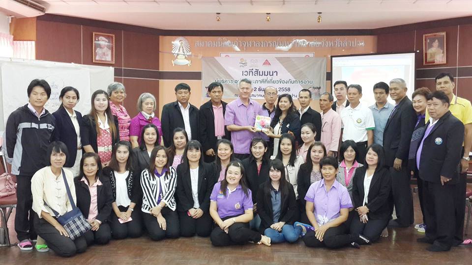 เวทีสัมมนาผู้บริหาร อปท.และภาคีเครือข่ายส่งเสริมการอ่านในพื้นที่อำเภอแจ้ห่ม เพื่อบูรณาการการทำงานส่งเสริมการอ่านเพื่อสุขภาวะในระดับอำเภอต้นแบบ ระหว่างวันที่ 1-2 ธันวาคม 2558 ณ ศูนย์เรียนรู้เพื่อครอบครัวเข้มเเข็ง อาคารสมาคมนิสิตเก่าจุฬาฯ ลำปาง ในการนี้ได้รับเกียรติจาก นายสมชัย กิจเจริญรุ่งโรจน์ รองผู้ว่าราชการจังหวัดลำปาง ประธานในพิธีเปิดการสัมมนาและกล่าวชื่นชมว่า "อำเภอแจ้ห่มเดินมาถูกทางแล้ว เริ่มจากพื้นที่เล็กๆ อย่างเข้มแข็ง ขยับเป็นพื้นที่ต้นแบบของการอ่าน” เพราะ "การอ่าน" เป็นการสร้างเสริมภาวะสุขภาพ