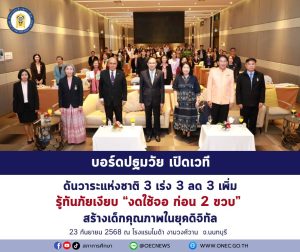 ที่ประชุมร่วมรับฟัง Stand talk เรื่อง “การลงทุนในเด็กปฐมวัยช่วยสร้างสังคมคุณภาพได้” โดย ศ.ดร.ปังปอนด์ รักอำนวยกิจ กล่าวว่า การลงทุนในเด็กปฐมวัยถือเป็นการลงทุนที่คุ้มค่าที่สุด จากการศึกษาทางเศรษฐศาสตร์การศึกษาชี้ชัดว่า ทุก 1 บาทที่ลงทุนไปจะคืนกลับมามากกว่าหลายเท่าในอนาคต กอปรกับไทยก้าวสู่สังคมสูงวัยอย่างสมบูรณ์ สังคมที่มีคุณภาพจึงต้องเริ่มจากการดูแลเด็กเล็กให้สมวัยเพื่อสร้างทรัพยากรมนุษย์ที่สมบูรณ์ ดังนั้น การงดใช้จอก่อน 2 ขวบถือเป็นก้าวสำคัญที่จะส่งผลต่อความสามารถในการเรียนรู้และคุณภาพแรงงานในอนาคต และเรื่อง “ภัยร้ายจากสื่อหน้าจออันตรายกว่าคิด” โดย ศ.นพ.วีระศักดิ์ ชลไชยะ กล่าวว่า อนาคตที่ดีของเด็กควรเริ่มตั้งแต่ปฐมวัย โดยเฉพาะพัฒนาการเด็กตั้งแต่แรกเกิดถึง 6 ปี จะเป็นรากฐานของความเจริญก้าวหน้าและความยั่งยืนทางสังคม ผู้เลี้ยงดู คือ ผู้สร้างเครือข่ายการเรียนรู้ในสมองเด็ก ซึ่งต้องใช้การเลี้ยงดูจากผู้ใหญ่ที่มีความมั่นคง ดูแลเอาใจใส่ และมีปฏิสัมพันธ์ร่วมกัน รวมถึงปัญหาการใช้สื่อหน้าจอกับสมองด้านภาษาและการอ่าน พบว่า เด็กที่ใช้สื่อหน้าจอมากจะมีความสัมพันธ์กับการลดลงของ white matter tracts ในสมองซึ่งสอดคล้องกับการประเมินทางสติปัญญา ตลอดจนปัญหาของเด็กที่อายุน้อยกว่า 3 ปี ที่ได้รับสื่อมากกว่า 1 อย่างพร้อมกันสัมพันธ์กับปัญหา EF เพิ่มขึ้น และปัญหาสื่อที่กระทบต่อพฤติกรรมทั้งด้านการนอน อารมณ์ ความก้าวร้าว ทั้งนี้ หากจะให้ลูกใช้สื่อหน้าจอควรเลือกโปรแกรมที่มีคุณภาพเหมาะสมตามวัย สิ่งสำคัญคือ เน้นส่งเสริมให้เด็กนอนหลับ ออกกำลังกาย เล่นตามวัย อ่านหนังสือ และมีปฏิสัมพันธ์ทางสังคมกับเด็กอย่างเพียงพอ