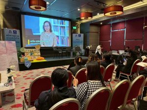 นางนภัทร พิศาลบุตร เจ้าหน้าที่ฝ่ายพัฒนาเด็กเล็ก องค์การยูนิเซฟ ประเทศไทย นำเสนอ แนวทางการดูแลเด็กด้านจิตสังคมในภาวะฉุกเฉิน เพื่อลดปัจจัยเสี่ยง เพิ่มปัจจัยบวกต่อการปกป้องเด็กในช่วงเวลาที่เปราะบาง ด้วยหลัก 4 R : Routine – Repair – Rebuild – Referral เพื่อช่วยให้เด็กสามารถรับมือกับเหตุการณ์สะเทือนใจ ฟื้นฟูตนเอง และก้าวต่อไปได้ ทั้งนี้ ทางองค์การยูนิเซฟ ร่วมกับแผนงานฯ การอ่าน สสส. ได้พัฒนาหนังสือนิทาน เพื่อจัดพิมพ์เผยแพร่แก่พื้นที่ประสบภัยน้ำท่วมและชายแดนที่มีเหตุการณ์ปะทะ เพื่อให้ผู้ใหญ่ที่แวดล้อมเด็กได้เรียนรู้วิธีการจัดการ และการดูแลที่เหมาะสม