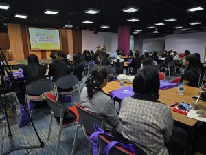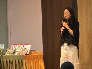 วิทยากรโดยคุณครูอ้อมขวัญ เวชยชัย หรือครูใบปอ ผู้ก่อตั้ง Cream Bangkok ได้มาปลุกพลังที่ซ่อนอยู่ในหนังสือนิทานเพื่อเชื่อมโยงเด็กสู่ “การอ่าน เล่น และเรียนรู้” และชวนผู้เข้าอบรมได้ให้เห็นถึงแง่มุมที่หลากหลาย และเต็มไปด้วยพลังมหัศจรรย์ของหนังสือภาพหรือนิทาน เพื่อเป็นการสร้างแรงบันดาลใจและเสริมสร้างพลังให้กับผู้ใหญ่รอบตัวเด็ก ให้มองเห็นถึงคุณค่าในตนเอง ในฐานะผู้คนที่มีส่วนสำคัญในการพาหนังสือไปพบเด็กๆ ในแบบที่มีคุณค่า มีความหมาย และในฐานะของผู้สร้างสรรค์ประสบการณ์ทางการอ่าน